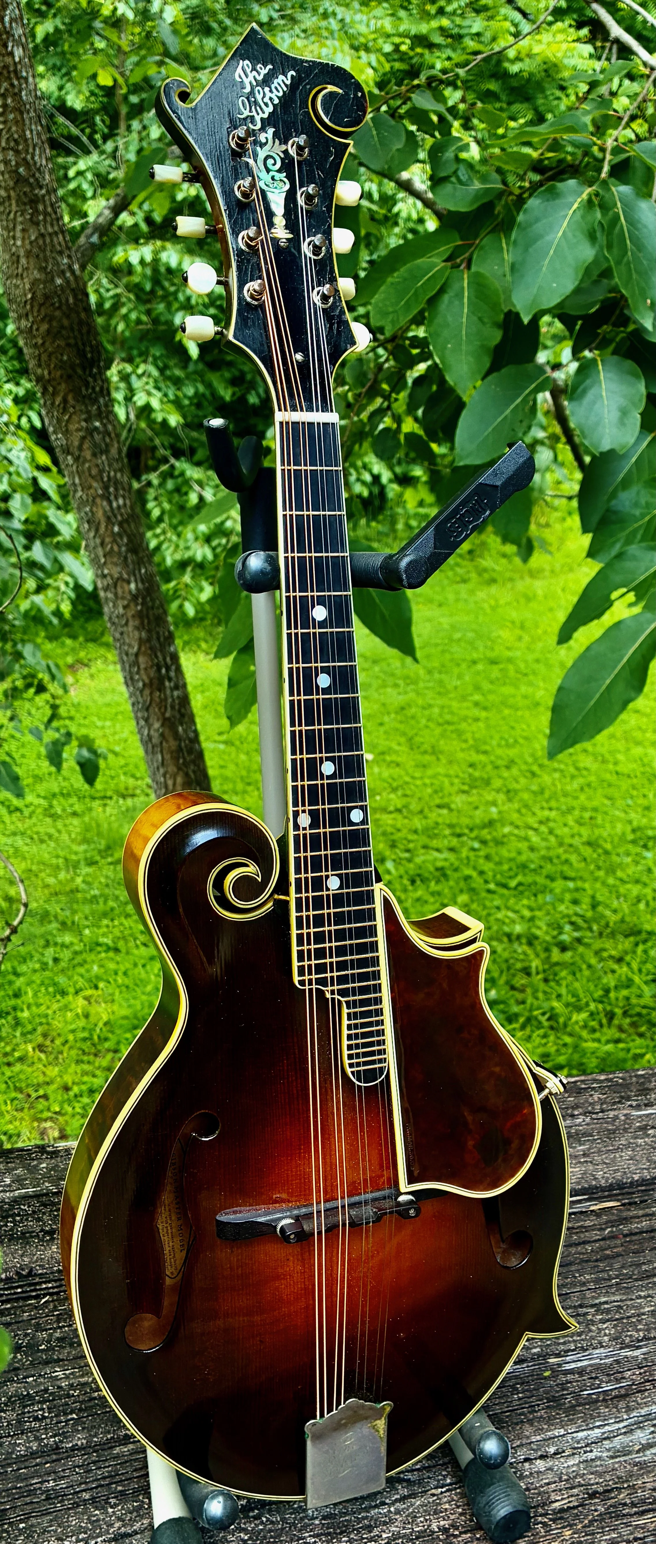 1923 Gibson F-5 mandolin # 73731 signed by Lloyd Loar on July 9, 1923 welcomes its 102nd birthday in extremely fine original condition. This one is for the serious mandolin player, and for that person, this is a dream come true: condition, originality and sound all score 10 out of 10. In fact, 73731 is a marvel to behold in every way! Whether you are a fan of Bill Monroe (this mandolin was signed the same day as Mr. Monroe’s famous F-5 #73987) or an advocate of one or all of the other styles we steer our mandolins toward these days, this one gets the job done with elegance and refinement, or if you dial up the right hand, majestic power and command. It goes anywhere you want to steer it.